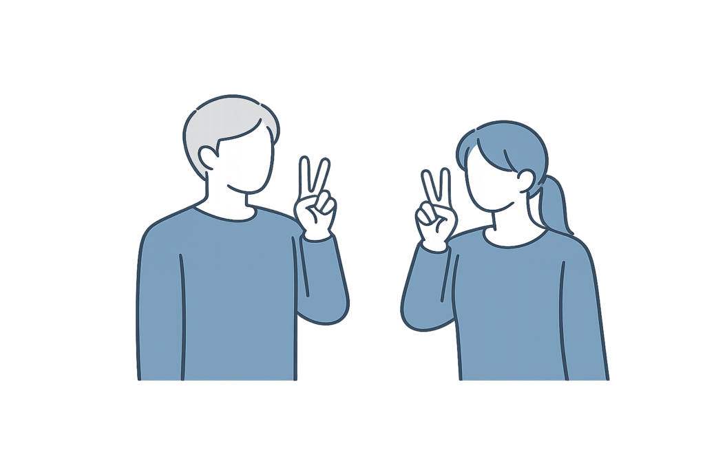 ピースする男女イラスト素材です。