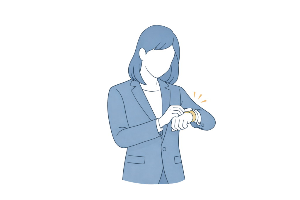 時計を確認する女性のイラスト素材です。顔まで透過してしまいましたゴメンナサイ。
