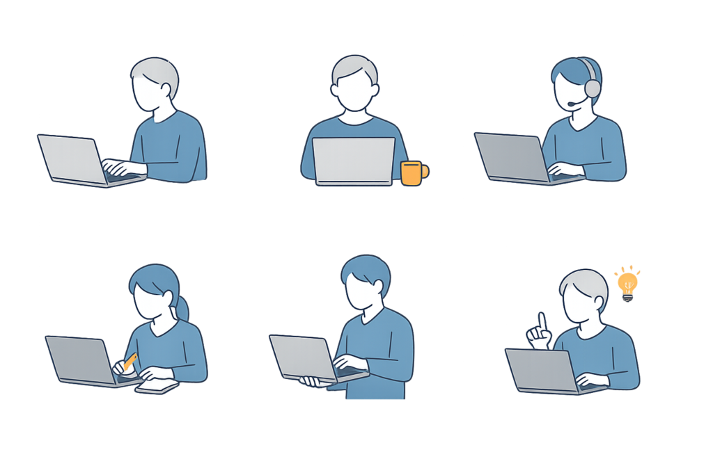 主張しすぎない落ち着いた配色で、業務資料になじむイラストです。